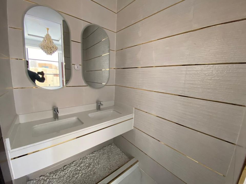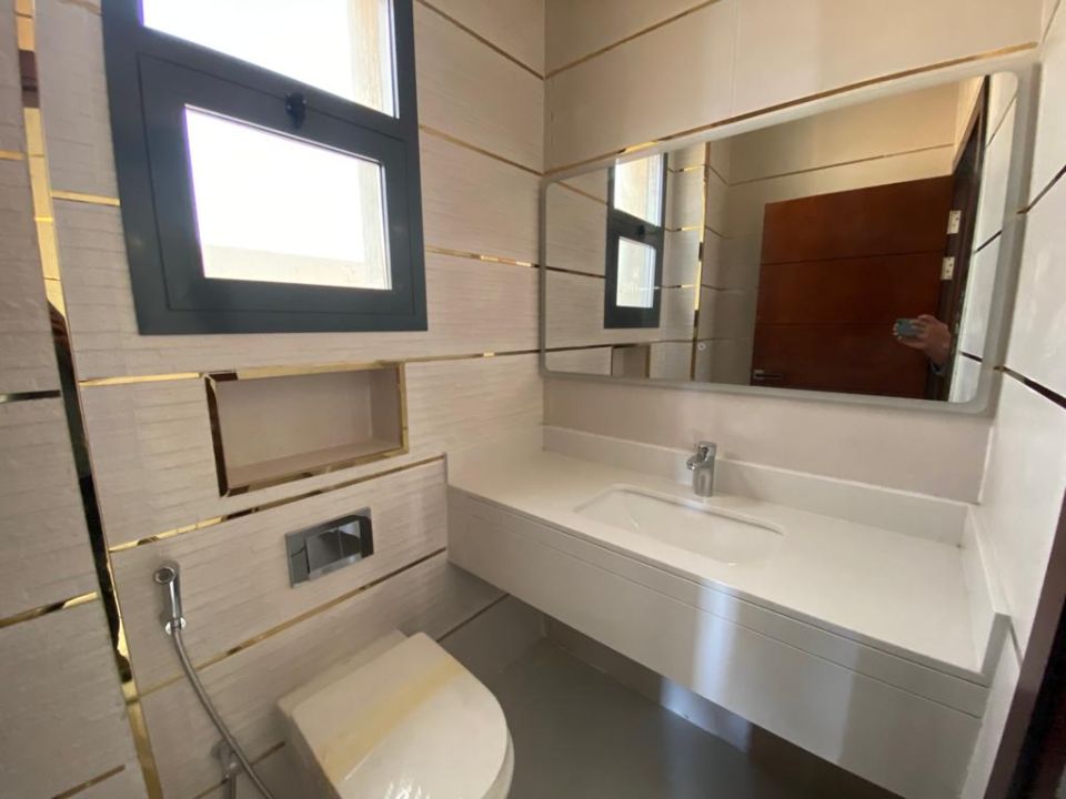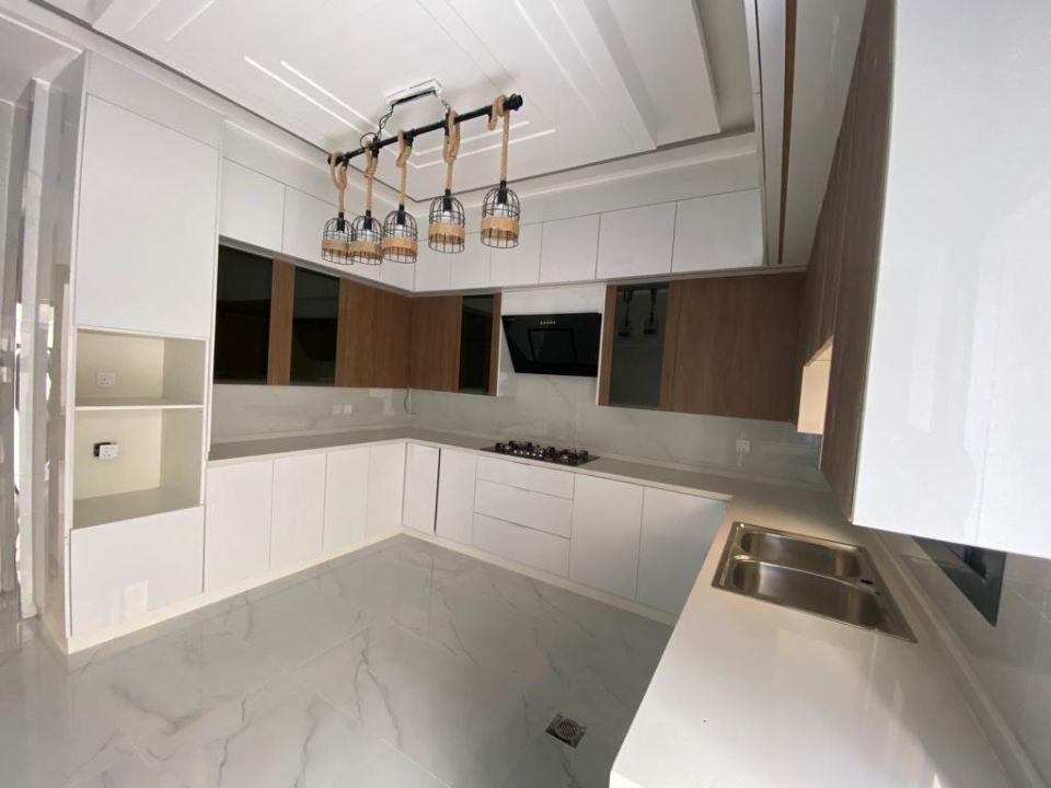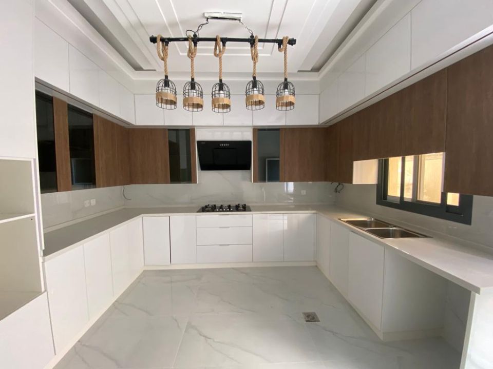This Villa consists of two floors, with the first floor featuring a guest room a large master hall, a kitchen, and a maid's room. The second floor boasts three master bedrooms, ensuring all family members have private space. The Villa's modern kitchen has top-of-the-line appliances, perfect for gourmet cooking and creating delicious meals for family and friends. Each main bedroom has built-in wardrobes for ample storage.