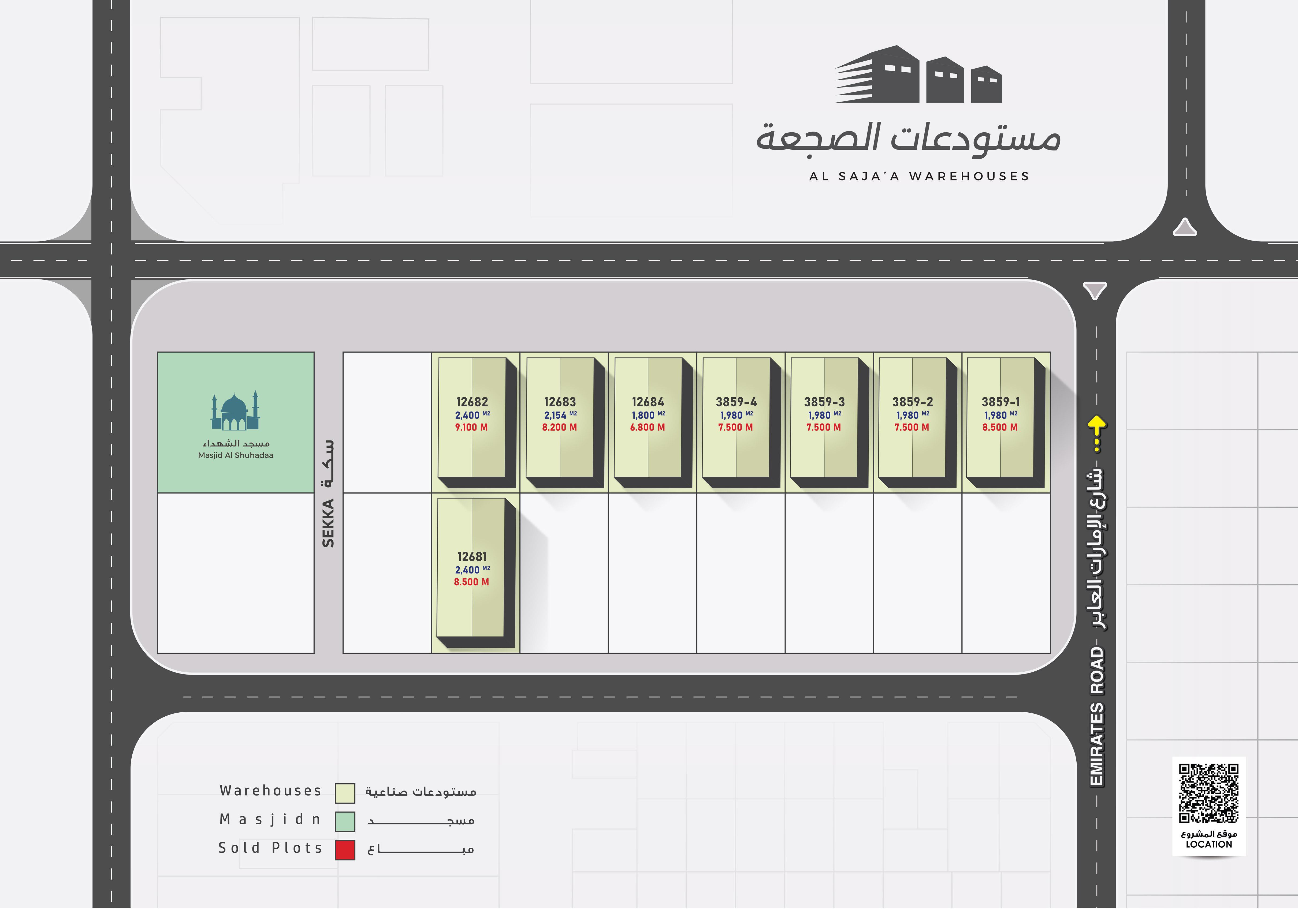 For more details, available plot numbers, or to arrange a site visit, contact us today and secure your warehouse in Sajaa Industrial Area.